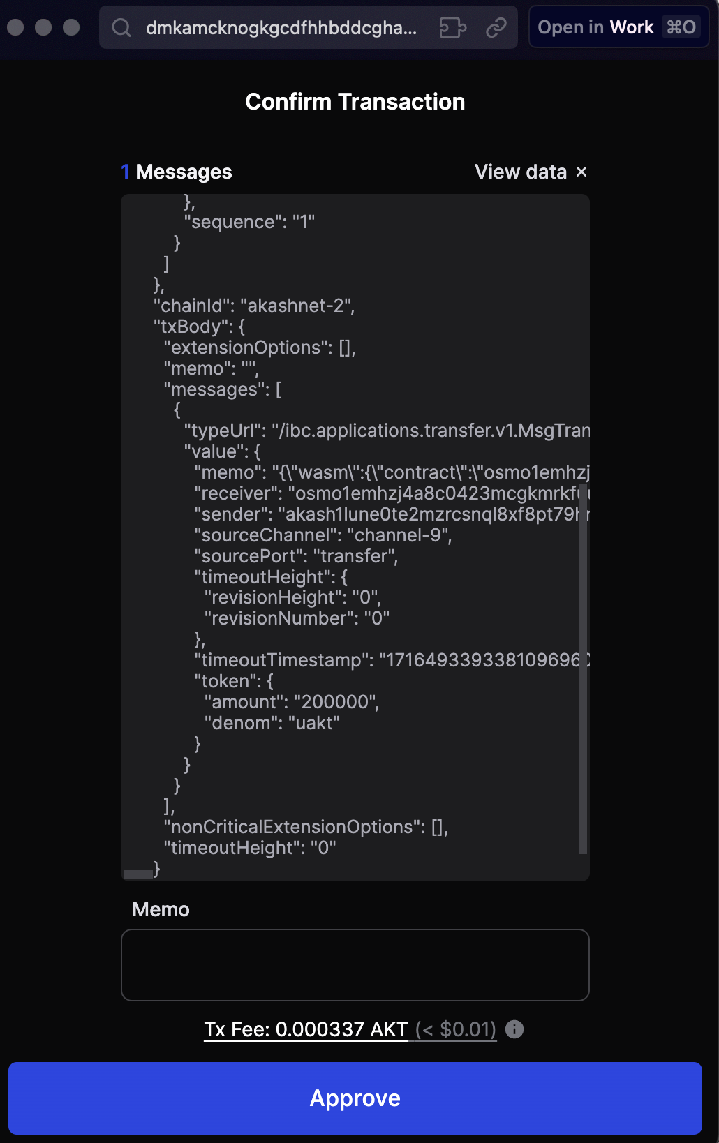3. Use /fungible/msgs (messages()) to get a transaction for the user to sign after they’ve locked in the route & begun the transaction creation process